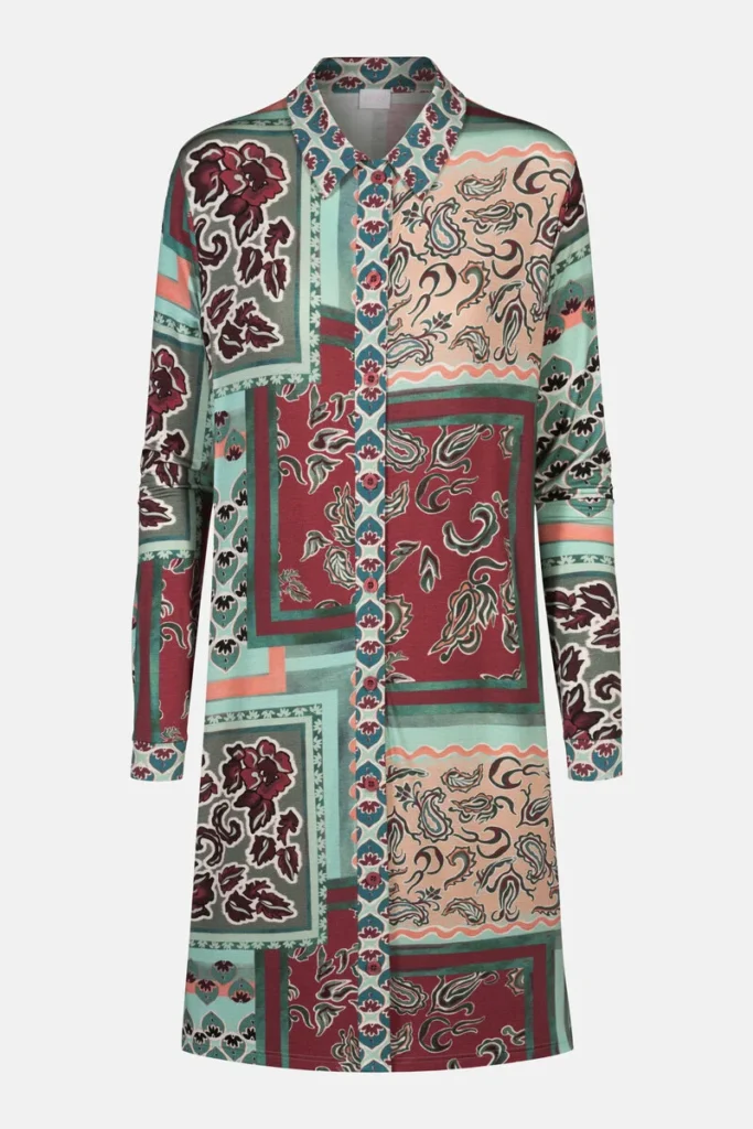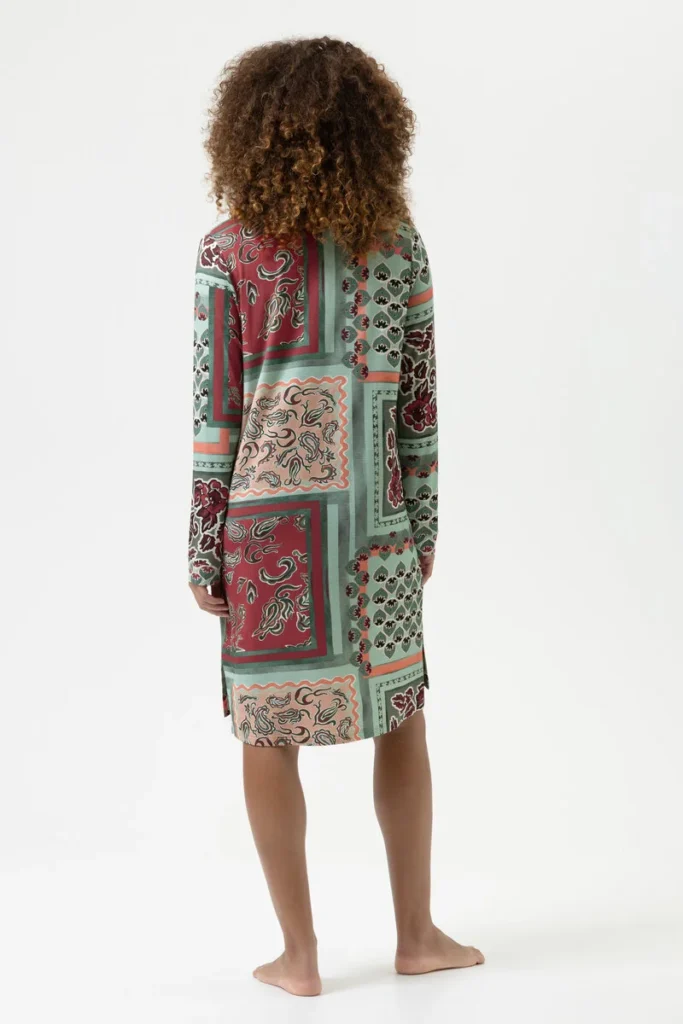 Dit nachthemd van Mey is in de kleur Eucalyptus Green uit de serie Mystical Maze. Dit moderne nachthemd met patchprint is doorgeknoopt met een mooie stevige kraag. Gemaakt van een zachte stof met een luxe glans, voelt deze set heerlijk aan op de huid. De moderne doekprint zorgt voor een unieke uitstraling. Dit heerlijke nachthemd met lange mouwen biedt goede nachtrust zorgt voor hoog draagcomfort. Stijlvol, comfortabel en elegant tegelijk. Gemaakt van 94% modal en 6% elastaan. Textiel van modal voelt door de fijne vezels zeer zacht en soepel aan. Onze nachthemden zijn Oeko-Tex® Standard 100-gecertificeerd. Met dit product kiest u bewust voor textiel dat is getest op schadelijke stoffen.Verzenden