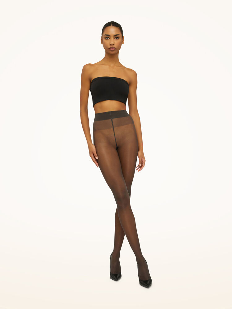 Deze ultradunne panty van 20 denier van Wolford voelt zijdezacht aan en geeft je huid een subtiele, elegante satin-glans. Perfect voor wie op zoek is naar een verfijnde en vrouwelijke uitstraling met een comfortabele pasvorm. De panty heeft een bijna onzichtbaar verstevigde teen, waardoor hij ook geschikt is voor open schoenen. De zachte, brede tailleband met subtiel logo zorgt voor ultiem draagcomfort zonder af te knellen. Bovendien is dit model duurzaam geverfd – stijlvol én milieubewust.