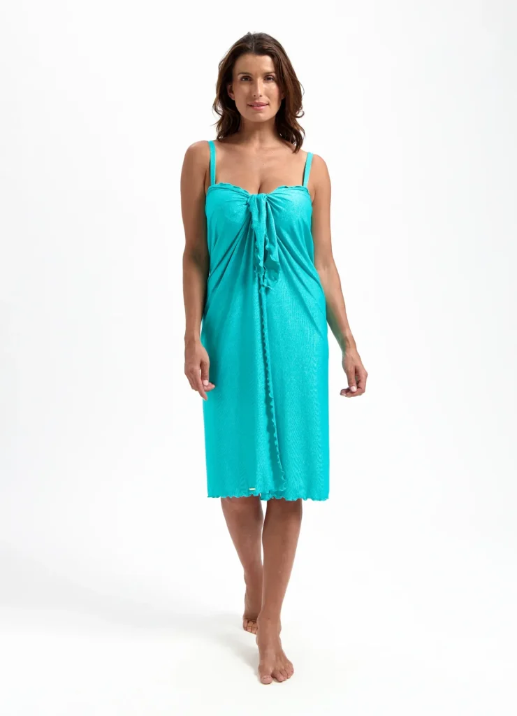 Details: Deze leuke rok uit de Sea Sparkle collectie van Cyell is in de zelfde kleur en kwaliteit als de bikini’s. Deze wikkel je dus heel gemakkelijk om als rok of als jurkje. Deze kan zelf op gewenste hoogte gestrikt worden. De rok is afgewerkt met een leuke roesel rand. Over al je bikini’s te combineren en je hebt een prachtige beachlook!