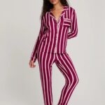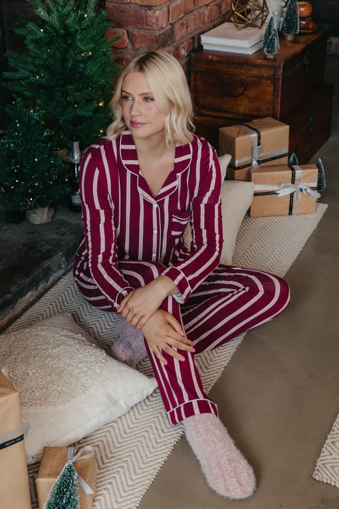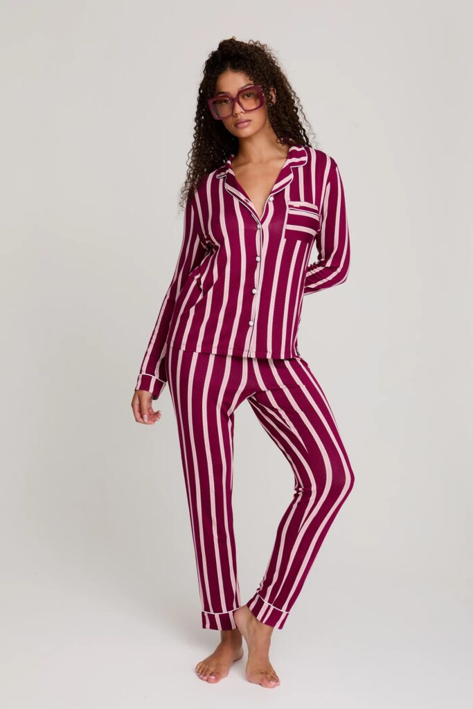 Pretty You BAMBOO bordeaux stripe pyjama (215)