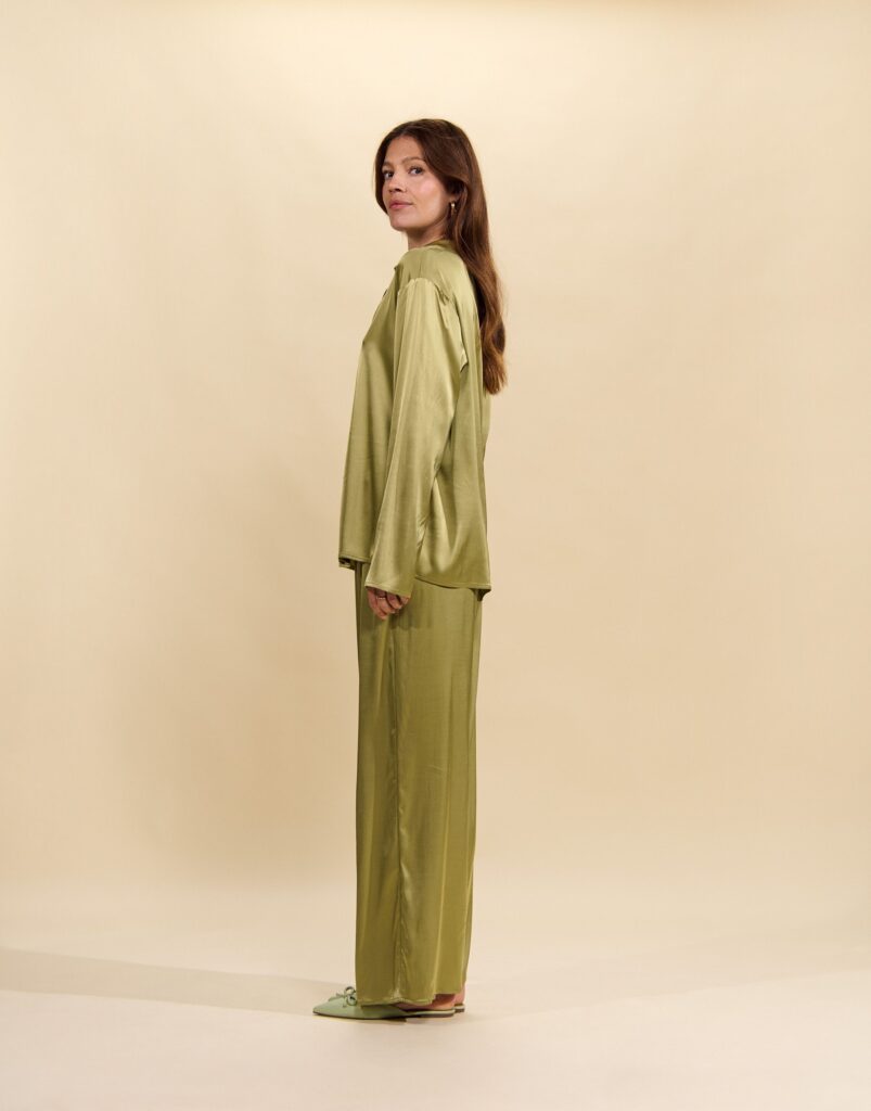 IDA Uni Satijn Cedar Green Pyjamabroek van Essenza Home