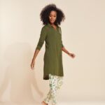 Deze taps toelopende lange broek van Essenza is uitgevoerd in verschillende unieke prints. De elastische taille en boorden bij de enkels maken deze broek ultiem comfortabel. Jules heeft een striksluiting in de taille en fijne steekzakken. Dit zit echt heerlijk. Deze stof is gemaakt van EcoVero viscose en elastaan. EcoVero viscose staat bekend om zijn zachtheid en zijdeachtige glans, wat zorgt voor een verfijnde uitstraling. Het is een duurzame variant van viscose, afkomstig van gecertificeerde hernieuwbare houtbronnen en geproduceerd met een lagere milieubelasting. De toevoeging van elastaan geeft het materiaal extra elasticiteit, waardoor het comfortabel meebeweegt met het lichaam en mooi aansluit. Deze weelderige bloemenprint is geïnspireerd door historische, botanische kunstwerken uit het archief van het Rijksmuseum.  Zorgvuldig geselecteerde bloemen en planten, vormen samen een kleurrijke bloemenweide. Dit rijke en diverse geheel straalt een gevoel van vrijheid en speelsheid uit, perfect voor de herfst! Combineer met het bijpassende nachthemd uit deze Augustine serie of juist met één van de prachtige uni's uit de Essenza collectie. Ook in het zwart verkrijgbaar.