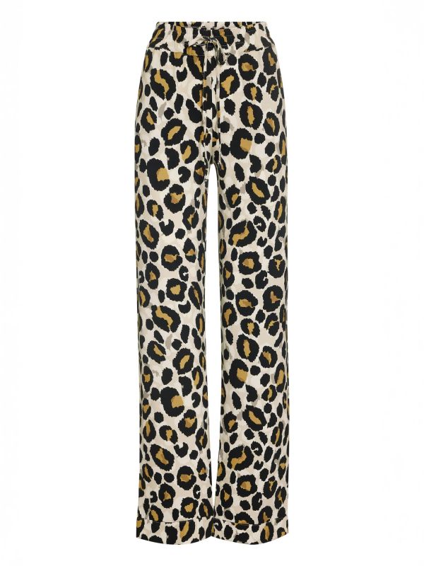 Deze Nora broek van Essenza is in het okergeel met subtiele dierenprint! Helemaal van nu. Deze broek biedt een perfecte mix van comfort en elegantie: met een middelhoge taille, een elastische tailleband met aansnoerlint en rechte, wijde pijpen biedt deze broek een tijdloze look, terwijl schuine steekzakken een praktisch en chic detail toevoegen. De stof is gemaakt van EcoVero viscose en elastaan: EcoVero staat bekend om haar zachtheid en zijdeachtige glans, wordt duurzaam geproduceerd uit gecertificeerde hernieuwbare houtbronnen en heeft een lagere milieubelasting. Elastaan zorgt voor extra elasticiteit en draagcomfort. Deze met de hand geschilderde luipaardprint combineert artistieke flair met een dynamisch gevoel van zelfvertrouwen: elegante rozetten – karakteristiek voor de vacht van de luipaard – komen tot leven op een zachte achtergrond die subtiel varieert van bruin tot groentinten, en vormen zo een speelse interpretatie van een klassiek motief. Combineer met het leuke bijpassende okergele shirt een leuke blazer en je kunt zo de deur uit! Pyjama en ready to wear in 1. Win- win.-