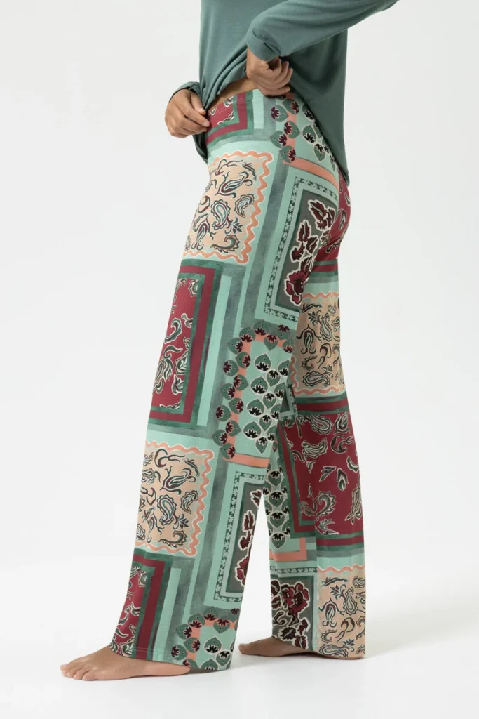 Deze stijlvolle Mey broek uit de serie Mystical Maze in Eucalyptus Green overtuigt door een unieke minimalistische print. Een prachtige kleurenmix die veel types mooi staat! Gemaakt van 94% model en 6% elestan. Textiel van modal voelt door de fijne vezels zeer zacht en soepel aan. In combinatie met een blouse of een effen shirt ontstaat een stijlvolle, elegante look. Te mooi om alleen in huis aan te hebben. Alle broeken zijn Oeko-Tex® Standard 100-gecertificeerd. Met dit product kiest u bewust voor textiel dat is getest op schadelijke stoffen.