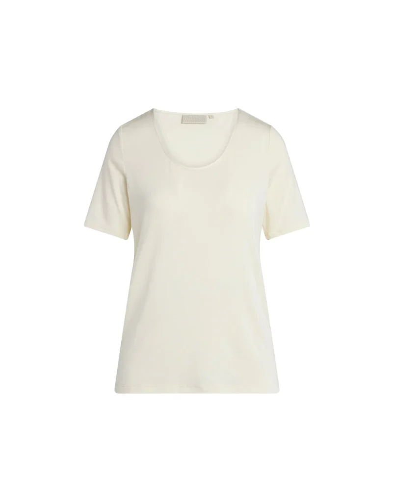 De Julot top van Ezzena straalt verfijning uit door het subtiele satijndetail rondom de nek. Met een rechte pasvorm en korte mouwen is deze top zowel comfortabel als stijlvol, perfect om te dragen op een ontspannen dag of voor een elegante look. Deze stof is gemaakt van het natuurlijke materiaal modal, gecombineerd met elastaan. Modal wordt gemaakt van beukenhoutpulp. Haar zachte eigenschap maakt het een perfecte stof voor pyjama’s en homewear. Modal is een heerlijk draagbare, soepele stof die het lichaam omhelst. Ook in antraciet kleur verkrijgbaar. Deze bestseller top matcht met alle prints van de Essenza herfstcollectie.-
