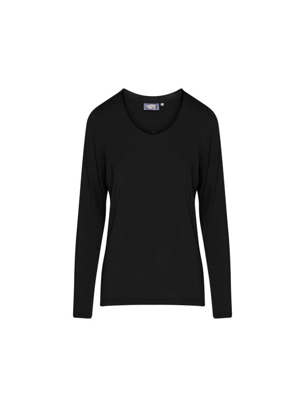 Top Luyza van Essenza is in de prachtige kleur moss. Deze top heeft een elegante ronde halslijn en lange mouwen en de achterkant is iets langer dan de voorkant, waardoor deze comfortabele top vrouwelijk valt en mooi afkleedt. De stof is gemaakt van het natuurlijke materiaal modal, gecombineerd met elastaan; modal wordt vervaardigd uit beukenhoutpulp en staat bekend om haar zijdezachte touch. Dat maakt het perfect voor pyjama’s en homewear. Modal is een soepel, heerlijk draagbaar materiaal dat het lichaam omarmt. De Uni-print waarmee deze top is uitgevoerd, valt op door haar rustgevende eenvoud: zonder patroon of afleiding draait het volledig om pure kleur en helderheid. Dit ingetogen ontwerp straalt tijdloze elegantie uit en matcht met alle prints van de Essenza herfstcollectie. Ook in groen verkrijgbaar.