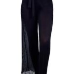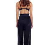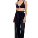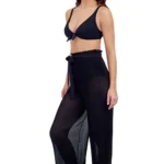 Details: Deze zwart wijde zwarte broek met dunne plooien is van Gottex. Valt heerlijk luchtig en soepel om je heen. Loopt een beetje uit met een leuke ruche aan de onderkant. Mooie elastische tailleband met een striklint. Deze super leuke broek kun je de hele zomer lang combineren over al je zwemkleding. Dit wordt je nieuwe favoriet!