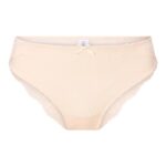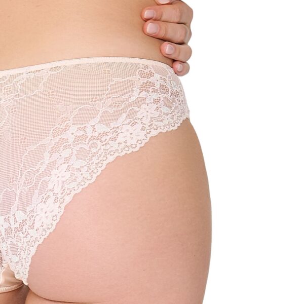 De LingaDore DAILY slip rio in de kleur Huid vormt een elegante basis voor je garderobe. Dit model combineert een gladde, ondoorzichtige voorzijde met een achterkant van transparant kant in een verfijnd bloemmotief. Een klein, subtiel strikje siert de tailleband aan de voorkant. Het materiaal voelt zacht aan op de huid en deze slip rio biedt een comfortabele pasvorm die mooi aansluit. LingaDore combineert met dit item functionaliteit en een vrouwelijke uitstraling.