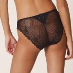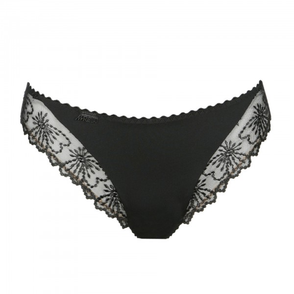 De Marie Jo JANE Italiaanse slip rio is zwart. De slip is van transparant gebloemd kant. De boord rondom is speels afgewerkt. Aan de voorkant zit effen materiaal en aan de achterkant zit ook een effen driehoekje. Rechts vooraan zit het logo van Marie Jo. Aan de achterkant zit een strikje met pareltjes. De slip heeft een gevoerd kruis. De slip is smal aan de zijkant en geeft daardoor optisch een slanker effect aan de heupen en boven benen. Heb je smalle heupen? Ga dan voor het hipster model uit deze serie. Dit artikel behoort tot onze standaard collectie. Mocht het artikel niet op voorraad zijn, dan wordt deze nabesteld en binnen 2 tot 3 werkdagen geleverd.Aanvullende informatie