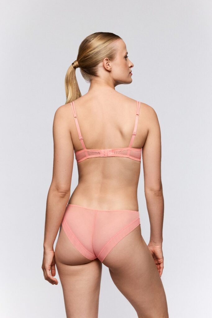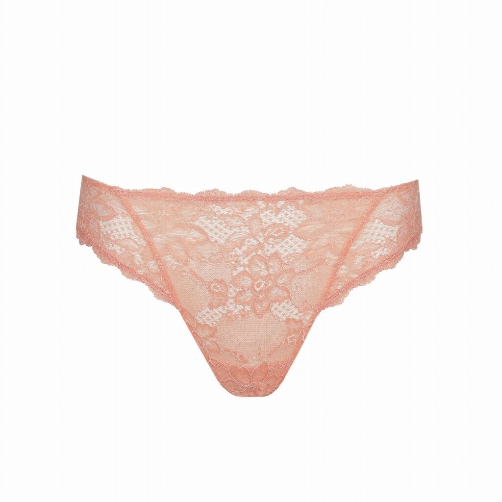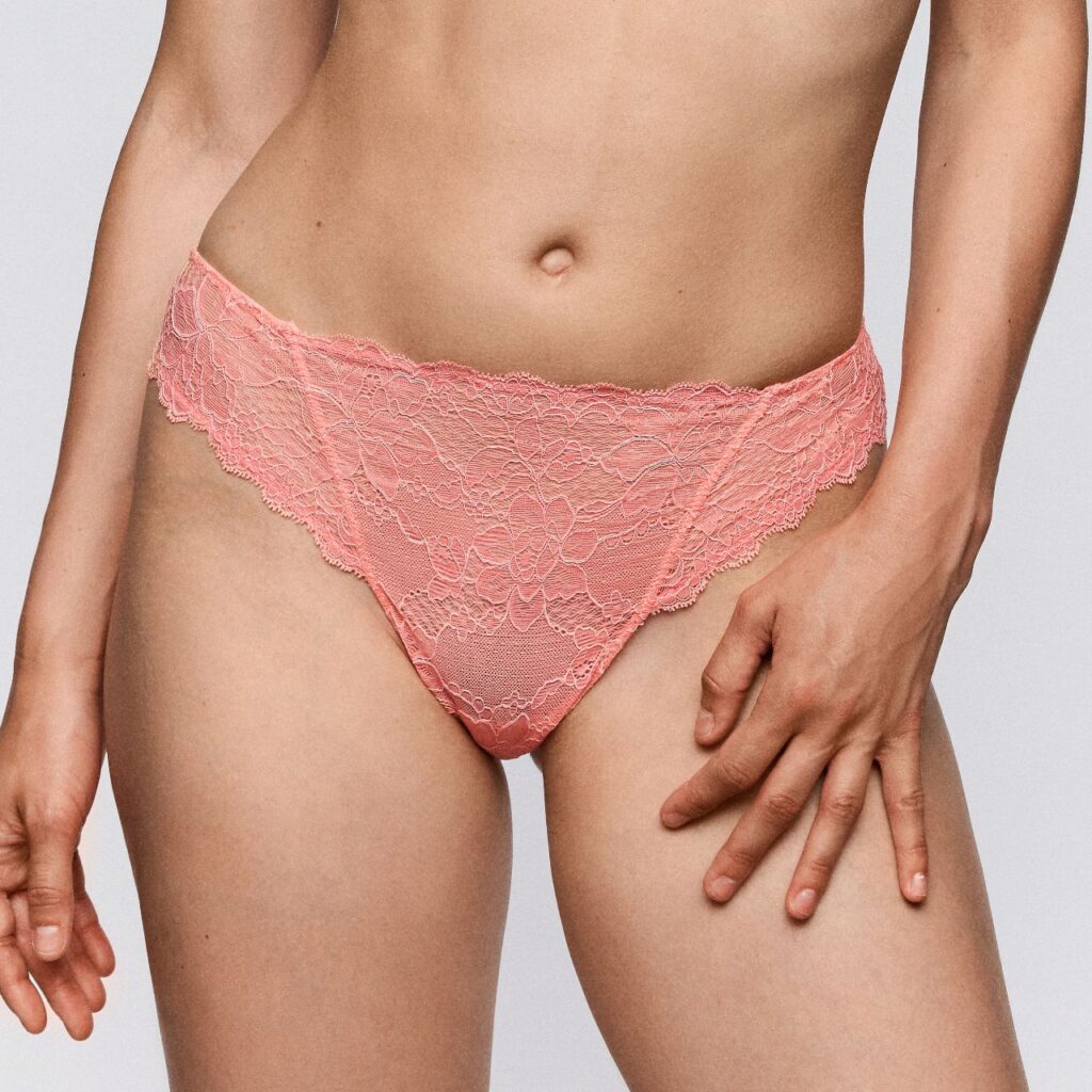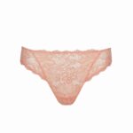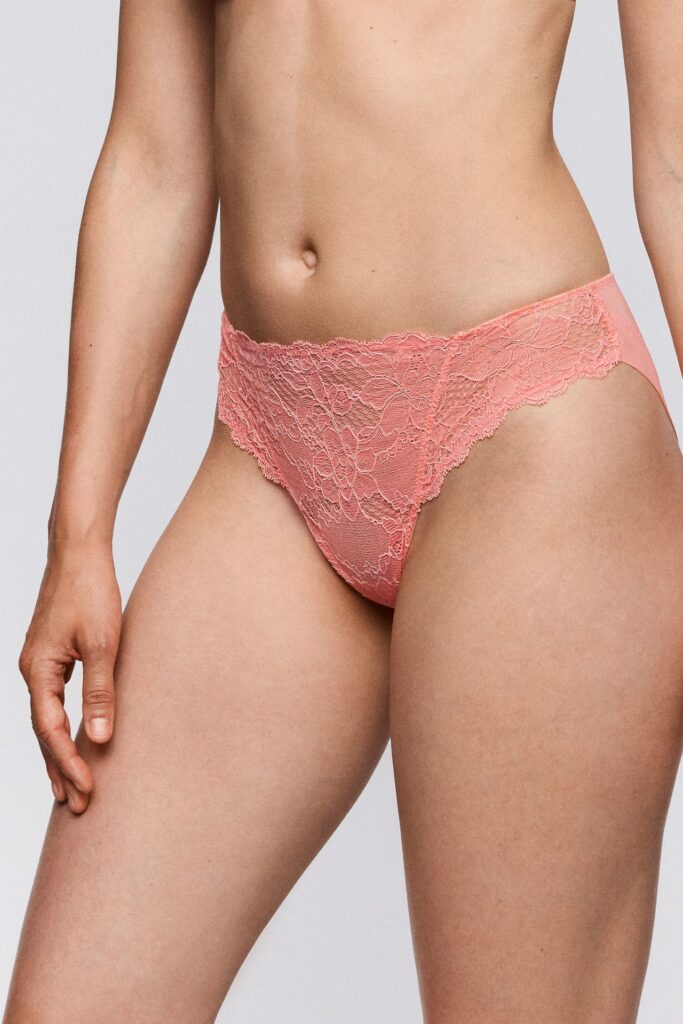Deze Sarda AMELIA rioslip is uitgevoerd in de zachte tint Rose. Het model kenmerkt zich door het gebruik van verfijnd kant met een gedetailleerd bloemenpatroon dat over de gehele stof loopt. De slip rio heeft een elegante, golvende afwerking langs de beenopeningen en de tailleband. Door de transparante structuur van het kant oogt het geheel licht en luchtig op de huid. Dit ontwerp van Sarda combineert een klassieke pasvorm met een vrouwelijke uitstraling.