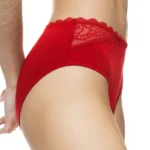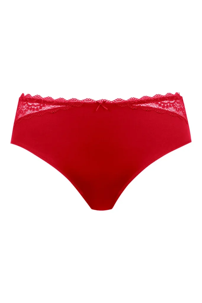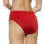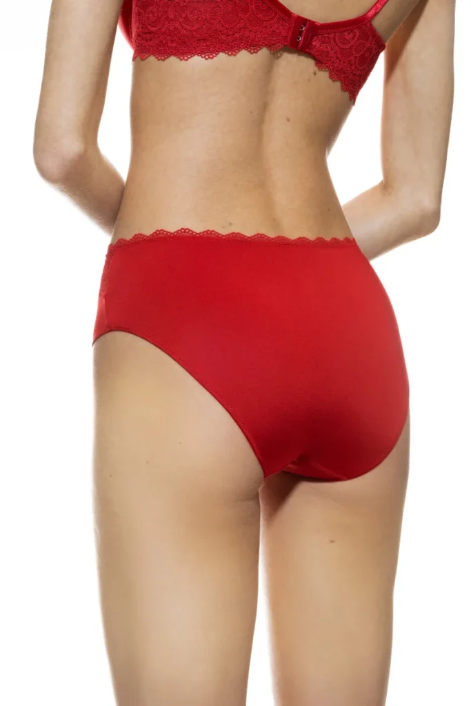 Deze rode Mey Amorous American pants is het vernieuwde model van de taille slip. De slip is effen met op de heupen aan beide kanten transparant gebloemd kant. De boord is speels afgewerkt. Aan de voorkant zit een strikje. Voorzijde van de slip is extra verstevigd, en geeft een licht corrigerend effect. Valt op de taille. Hij valt  Katoenen inzetstuk aan de binnenkant van het kruisje. Liever een lager model? Ga dan voor de hipster of de string uit deze Amorous serie.