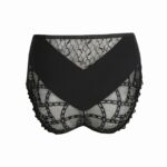 De Prima Donna NAICA tailleslip in de kleur zwart biedt een elegante combinatie van materialen en een comfortabele pasvorm. Deze slip taille valt hoog in de taille en bedekt de buik grotendeels. Het ontwerp kenmerkt zich door gladde, ondoorzichtige stof aan de voorzijde en transparant kant met een geometrisch patroon aan de zijkanten en achterkant. Dit zorgt voor een lichte en verfijnde uitstraling. De elastische tailleband zorgt dat de slip goed op zijn plek blijft zitten.