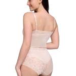 Deze hoge tailleslip in de kleur huid combineert een gladde licht glanzende stof met kanten details. De Ten Cate MAXI lace shiny slip taille heeft een brede kanten afwerking bij de beenuitsnijding op de achterkant en een subtiel randje langs de tailleband. De ademende stof sluit mooi aan op je lichaamsvormen. Kies voor een vrouwelijke uitstraling met deze comfortabele slip taille van Ten Cate.