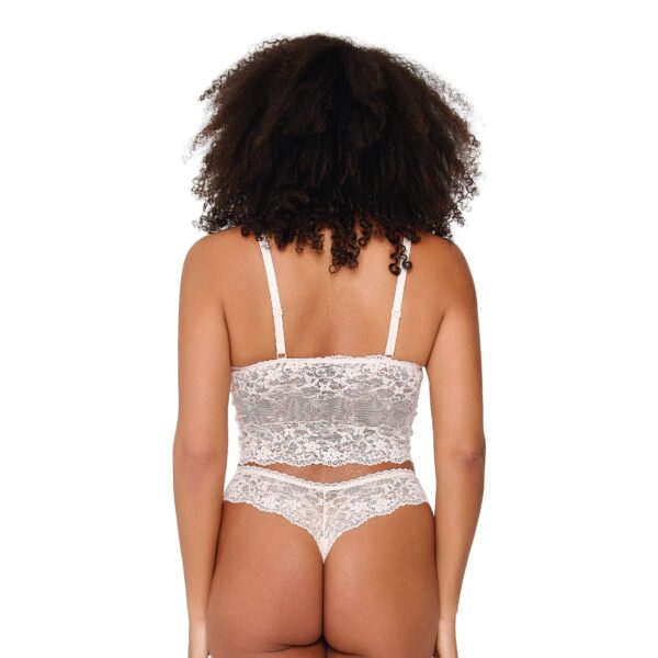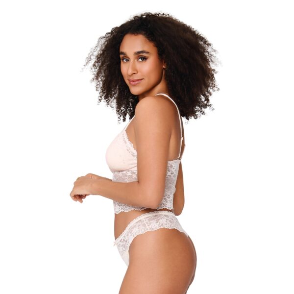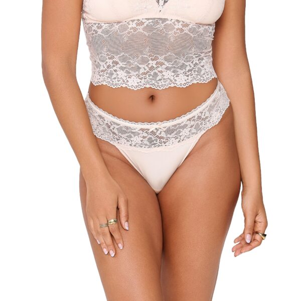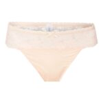 De LingaDore DAILY string in de kleur Huid vormt een verfijnde basis voor je dagelijkse garderobe. Deze slip combineert een gladde stof aan de onderzijde met een brede, transparante strook van kant rondom de taille. Aan de voorzijde bevindt zich een klein satijnen strikje voor een subtiel detail. Het model is hoog uitgesneden bij de benen, wat zorgt voor een elegante lijn. Dankzij de zachte materialen sluit de string mooi aan op het lichaam. Combineer dit item eenvoudig met andere huidskleurige lingerie voor een complete set.