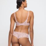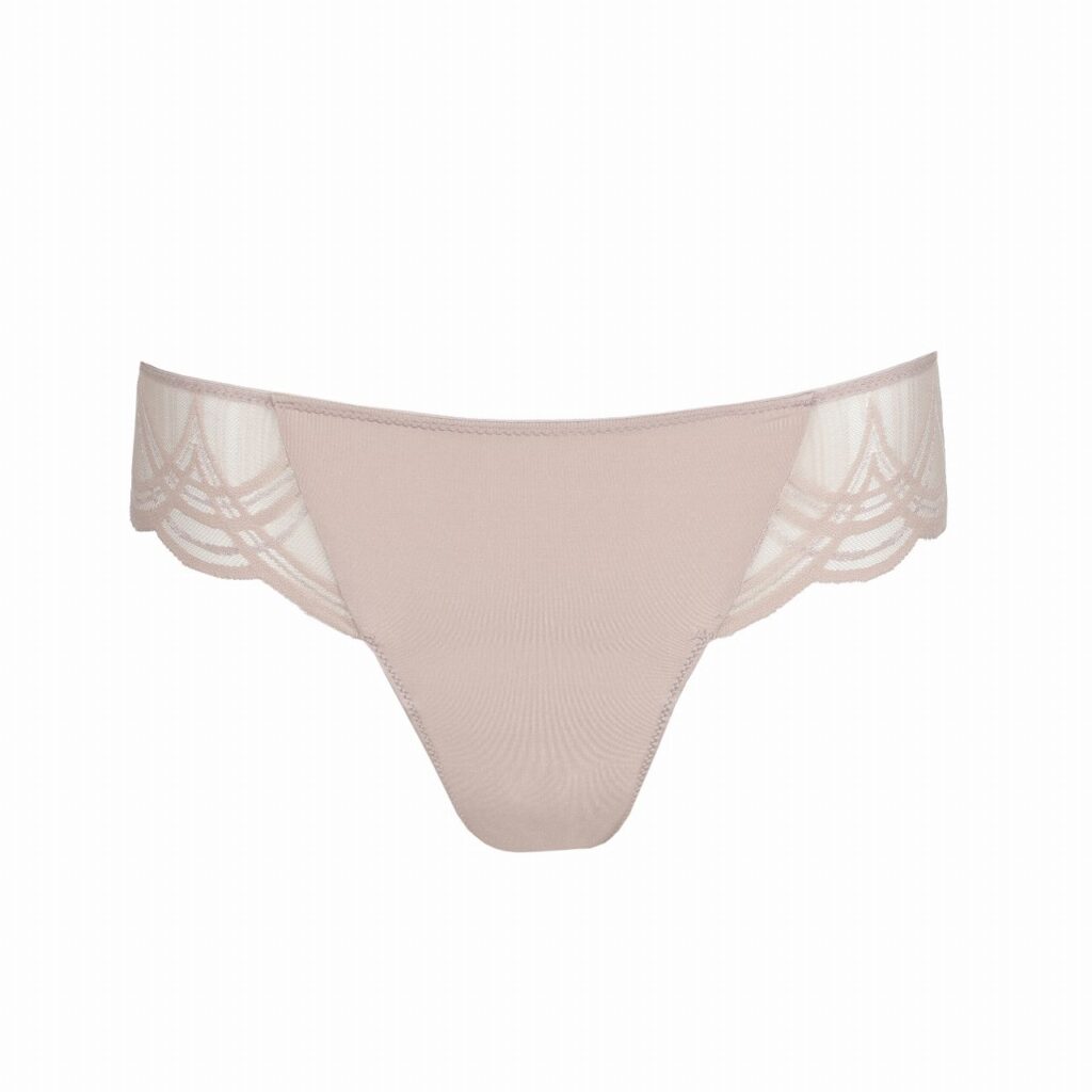 Details. De Cathia Marie Jo string is er nu in de kleur Bois de Rose. Een een sexy look en een ultieme fit, deze string in kant heeft het allebei. String met een extra hoge beenuitsnijding die je billen onbedekt laat.