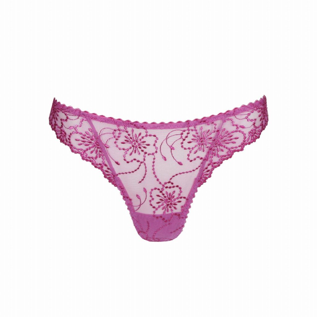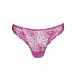 De Marie Jo Jane string in de kleur Fuchsia biedt een elegante uitstraling met verfijnd bloemenborduurwerk. Je ziet direct de gedetailleerde afwerking op de transparante stof en de sierlijke schulprandjes die de contouren volgen. Deze string voelt licht aan en zorgt voor een comfortabele pasvorm die mooi aansluit op het lichaam. Het fijne parelsnoertje in het borduursel geeft een subtiel accent aan het geheel. Dit model combineert luchtig materiaal met een stijlvol ontwerp voor een verzorgde look. Kies voor deze Marie Jo JANE string als je houdt van lingerie met oog voor detail.