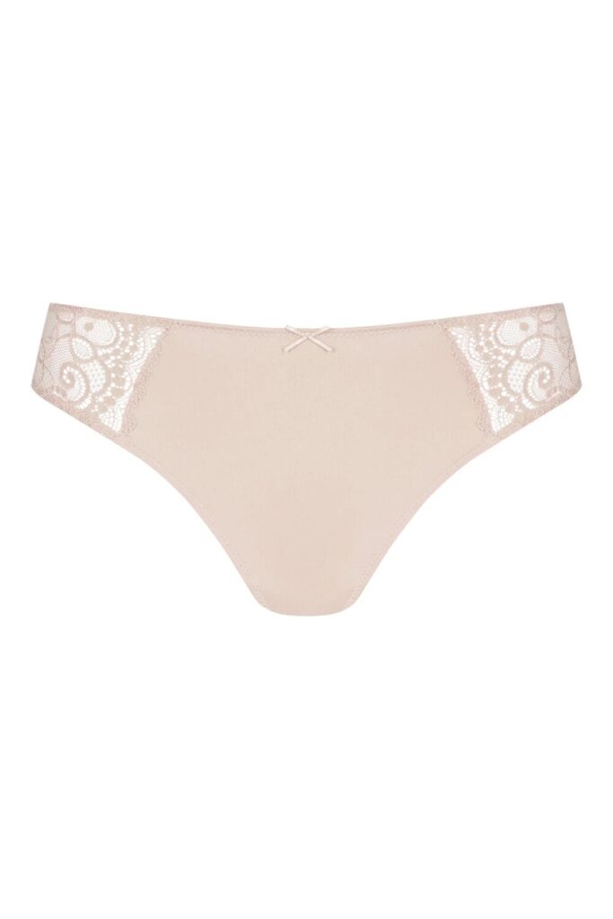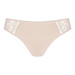 De Mey Allegra string heeft een huidskleur. De voorkant van de string is effen, de achter- en zijkanten zijn van gebloemd transparant materiaal. Aan de voorkant zit een strikje. De string heeft zachte zomen aan de beenopeningen en in de taille voor extra comfort. Het kruis heeft een katoenen inzetstuk.