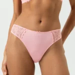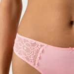 De Mey AMOROUS string in de kleur Rose biedt een combinatie van verfijnde esthetiek en een comfortabele pasvorm. Dit model kenmerkt zich door een voorzijde van gladde stof, afgewerkt met een subtiel strikje aan de bovenzijde. De achterzijde en zijkanten zijn voorzien van gedetailleerd kant met een bloemenpatroon, wat zorgt voor een luchtige uitstraling. Dankzij de platte naden tekent deze slip niet af onder strakke kleding. Het zachte materiaal sluit soepel aan op de huid. Deze Mey lingerie vormt een elegante basis voor je garderobe.