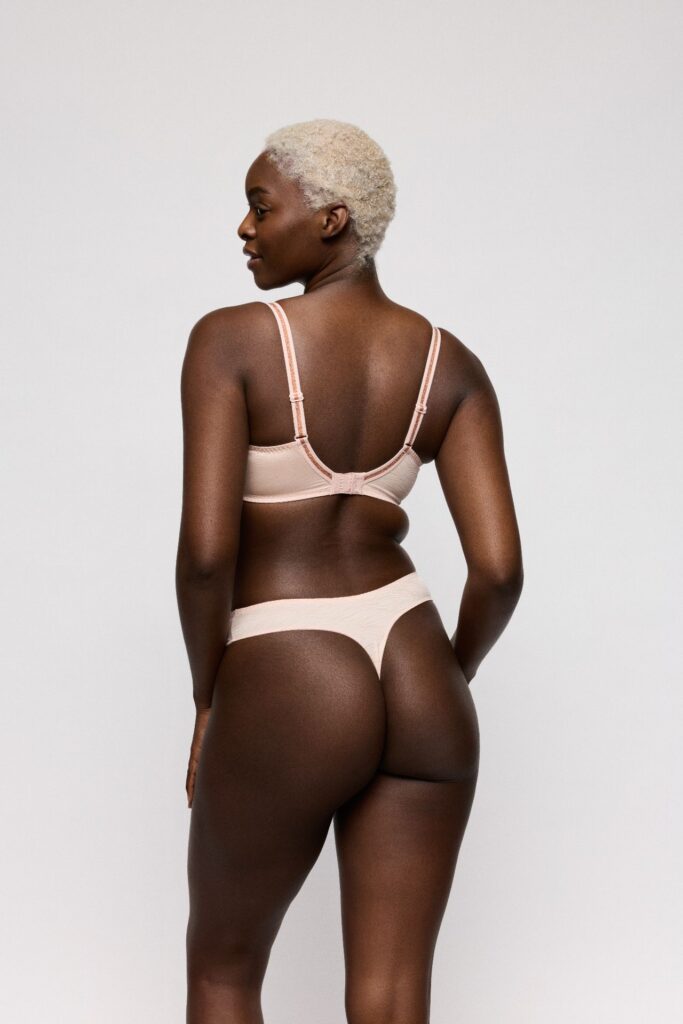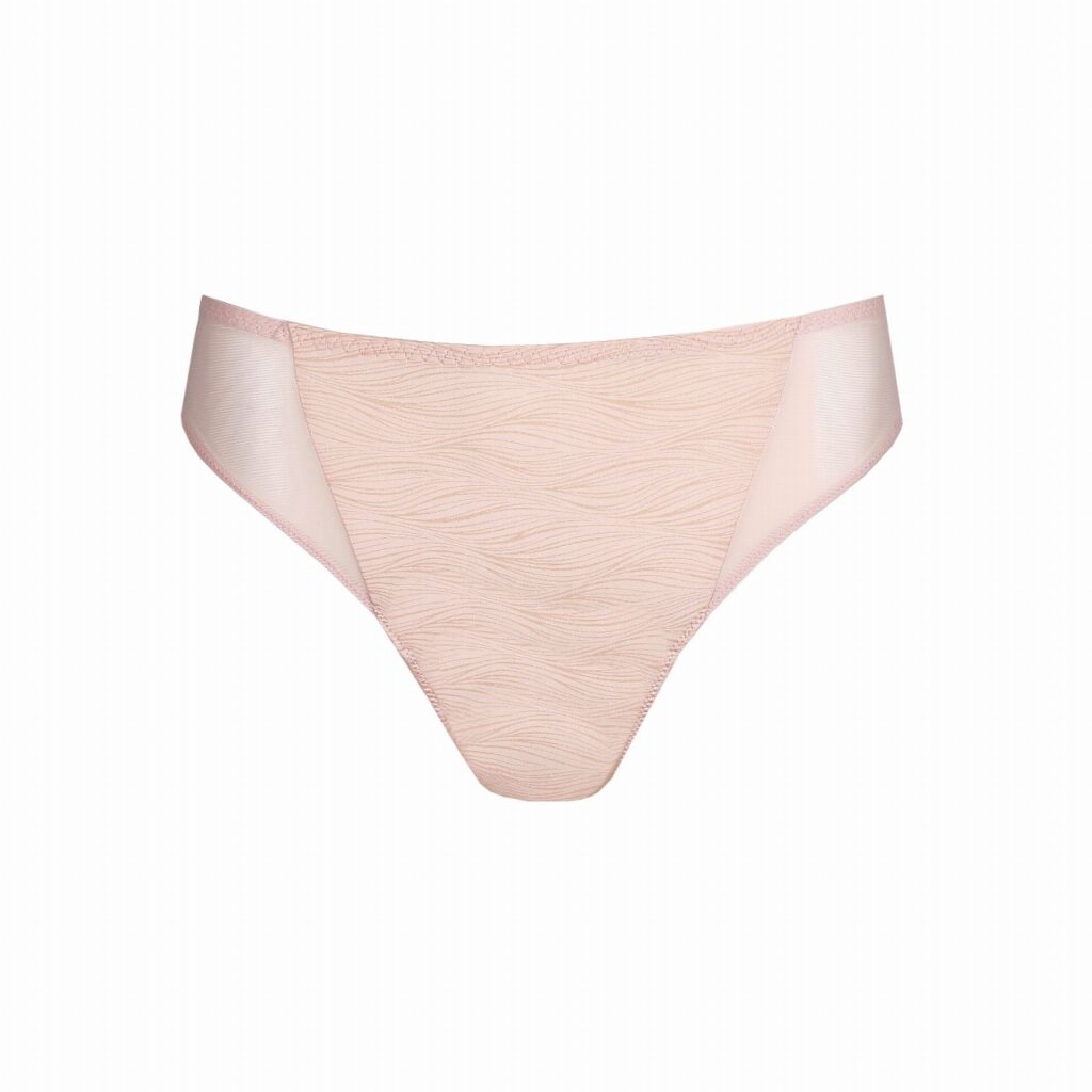 De Twist PD BRIANA string string in de kleur Rose heeft een verfijnde en lichte uitstraling. Dit model combineert een ondoorzichtige voorzijde met een subtiel golvend structuurpatroon en semi transparante inzetstukken van mesh aan de zijkanten. De string valt laag op de heupen en is hoog uitgesneden bij de benen voor een open look. De randen zijn afgewerkt met een smalle elastische band met sierstiksel, wat zorgt voor een goede aansluiting op de huid.
