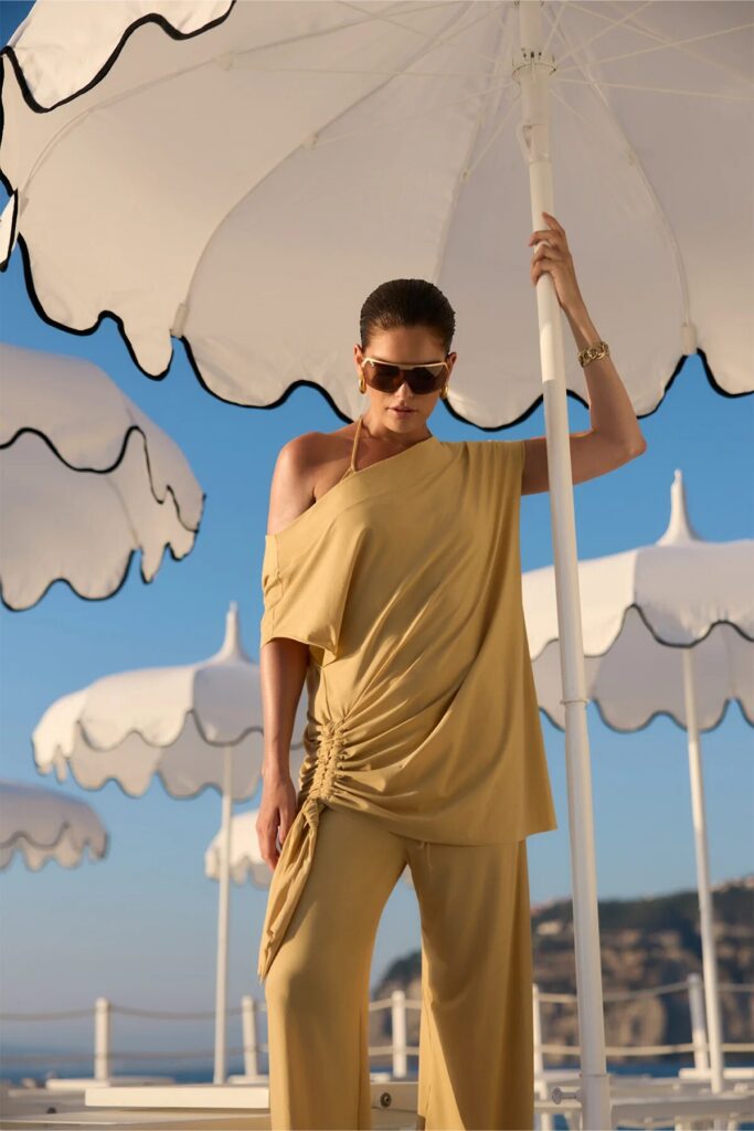 Goed zittende strandkleding maakt je beachlook compleet, en deze gele tuniekjurk past daar goed bij. Draag hem over je badpak op het strand, combineer hem met een broek voor een stadsbezoek of trek hem aan voor een relaxte lunch. De verstelbare ruching past de silhouet aan naar jouw voorkeur. Bekijk het volledige aanbod van Goldbergh strandkleding en jurkjes voor meer stijlvolle zomerlooks.