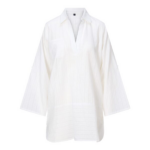 Dit witte nachthemd heeft een luchtige uitstraling door het subtiele verticale streepdessin in de stofstructuur. Het kledingstuk is gemaakt van een katoenmix en voelt aangenaam aan op de huid. De tunieklengte reikt tot halverwege de dij en zorgt voor een comfortabele pasvorm. Het model heeft lange mouwen die je kunt oprollen, een klassieke kraag en een v-hals. Aan de voorzijde zit een borstzakje. De verticale streepstructuur geeft het nachthemd een frisse uitstraling. De lichte stof is ademend en prettig draagbaar.
