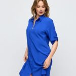 Deze blauwe tuniek van MarieJo Swim heeft een klassieke blouse uitstraling en is gemaakt van licht, luchtig materiaal. Het model valt soepel en reikt tot net boven de knie. De tuniek heeft korte mouwen met oprolbare manchetten en een doorlopende knoopsluiting aan de voorzijde. De kraag is puntig en afgezet. De stof heeft een gladde structuur en is effen gekleurd in een felle kobaltblauwe tint. Het design kenmerkt zich door de hemdsjurk uitvoering met knoopdetails.Highlights