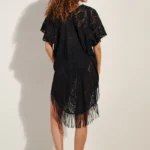 Details: Deze Pain de sucre poncho-tuniek JESSE bedekt je badkleding op een subtiele manier met transparantie. Het verfijnde kant van dit uitzonderlijke exemplaar accentueert de gebruinde huid en geeft je silhouet een stijlvolle look. De tijdloze en altijd elegante kleur zwart staat elk figuur goed.
