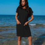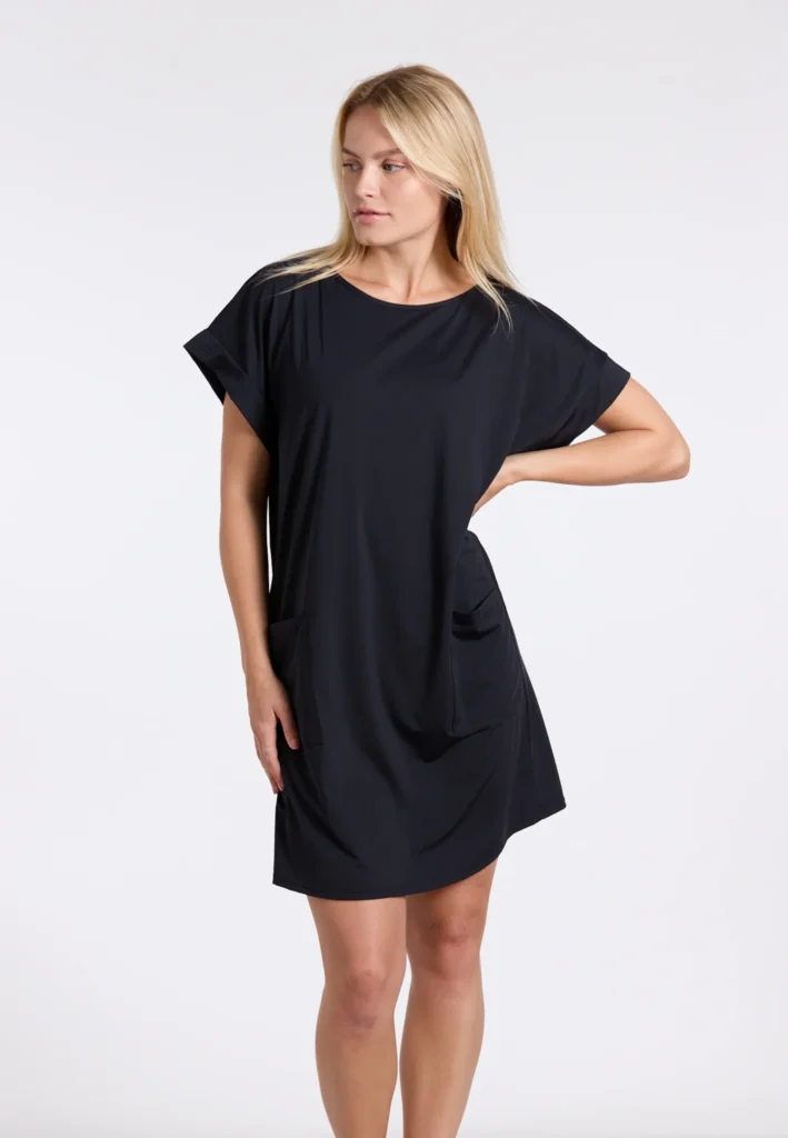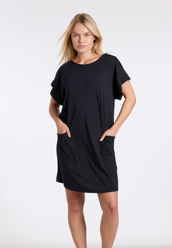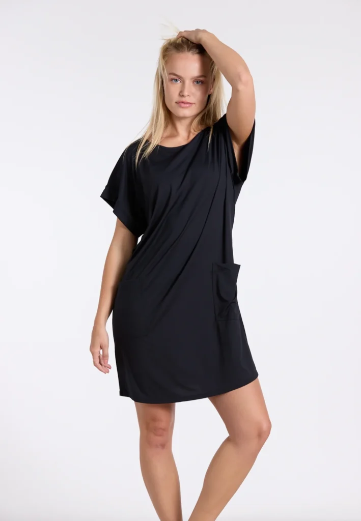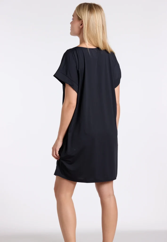Details: Deze fijne tuniek van Sunflair is zwart. Tuniek heeft een ronde hals, valt recht en is gemaakt in de zelfde fijne kwaliteit stof als de badkleding van sunflair. Tuniekje heeft korte mouwen met omslag en heeft steekzaken. Stof is sneldrogend en draagt super comfortabel. Dit tuniekje combineer je eindeloos met al je badkleding.